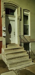 At the winding steps that lead me to this stoop in East Baltimore. . .